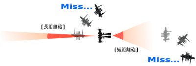 ※短距離砲は距離を取られる事で、遠距離砲は懐に潜り込まれる事でさらに威力が減衰します。(ほとんど当たりません)
