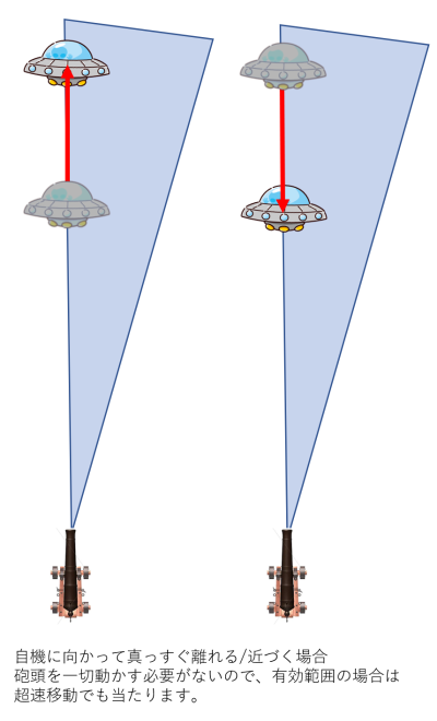 近くに寄ってくる奴らは、タレットのサイズが大きいほど当てづらい。(実効トラッキングが低いから)