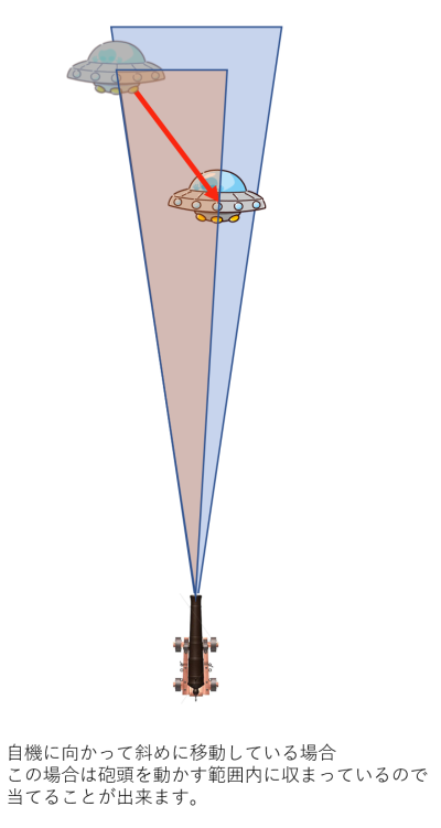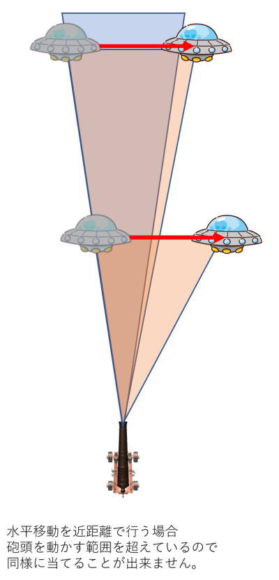これをすると範囲内で砲頭を動かす必要がなくなるので、100%当たります。