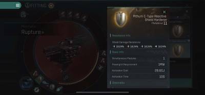 EVE Echoesではダメージを受ける際に、攻撃側のダメージ量/ダメージ属性と、防御側の属性ごとの耐久値に応じてダメージが計算される。 そのため、被ダメージ量を下げるためにはシールドやアーマーの属性耐久を上げるモジュールを装備する必要がある。